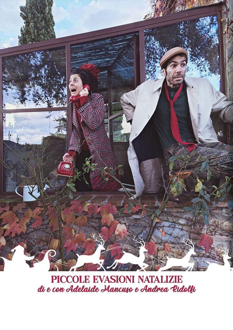 Piccole Evasioni Natalizie Scritto e interpretato da Adelaide Mancuso e Andrea Ridolfi. Spettacolo per bambini della durata di 45′. È una storia per bambine e bambini che parla di amicizia, di fuga,